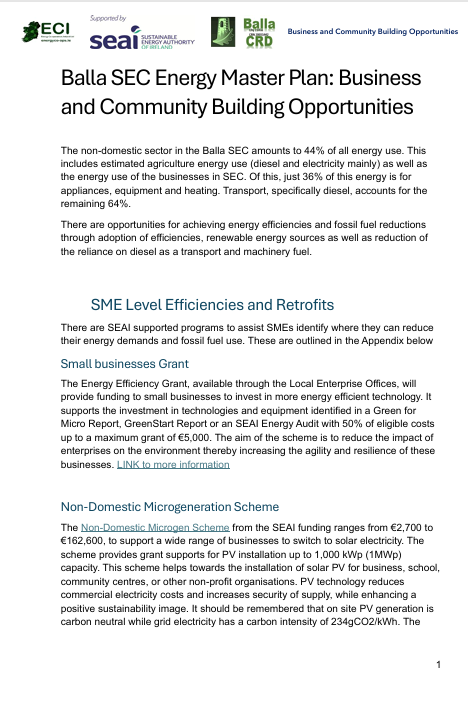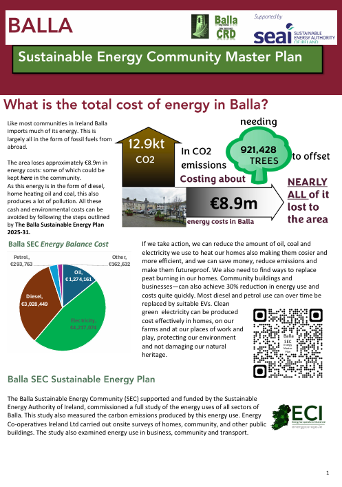 Balla, Co Mayo SEC Energy Master Plan is funded and supported by the Sustainable Energy Authority of Ireland (SEAI) as part of it’s Sustainable Energy Communties program