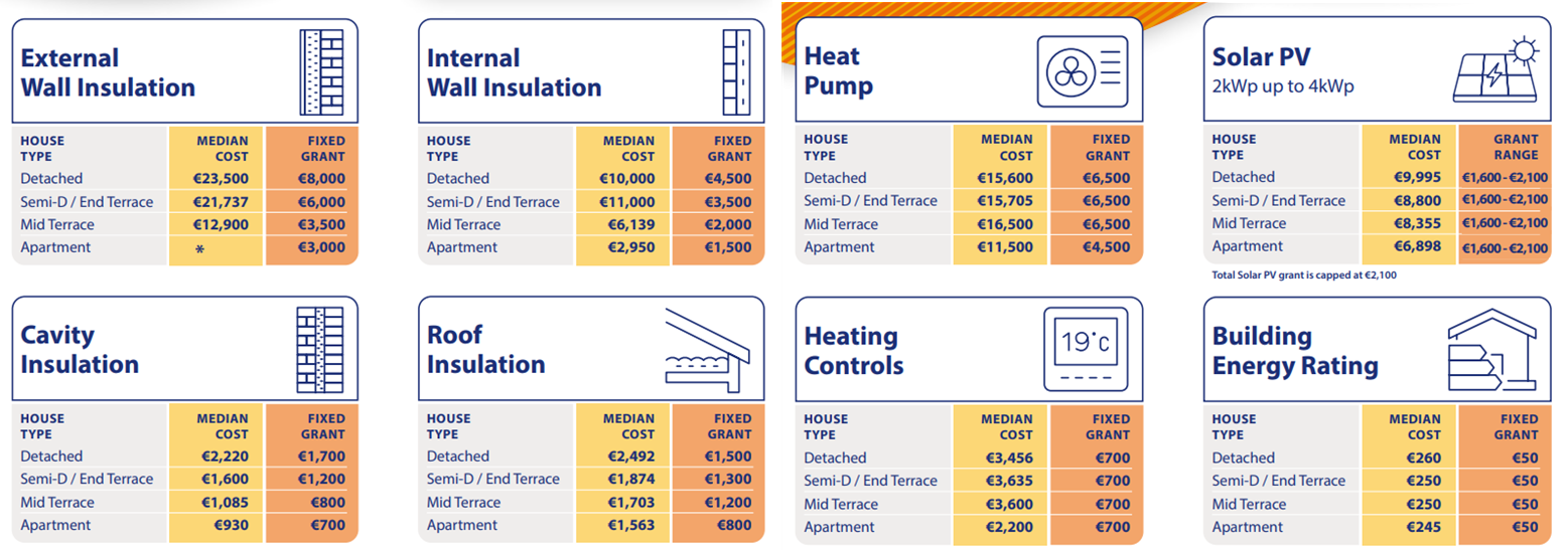 Up to 80% of the cost of the upgrade for a typical family home with SEAI grants