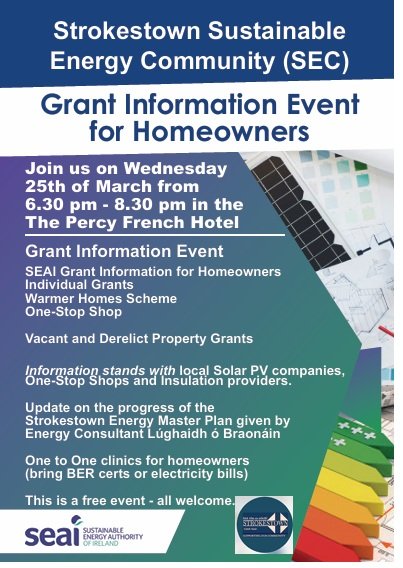 Strokestown SEC Energy Master Plan is funded and supported by the Sustainable Energy Authority of Ireland (SEAI) as part of its Sustainable Energy Communities program